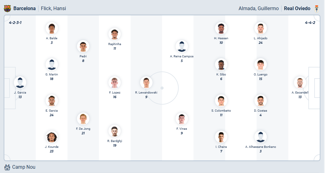 Barcelona hiện chỉ còn hơn Real Madrid 1 điểm sau khi bất ngờ để thua ở vòng đấu trước, đây là khoảng cách vô cùng mong manh và có thể mất bất cứ lúc nào nều họ để mất điểm thêm một trận nữa. Chính vì vậy Barcelona cần ngay lập tức trở lại với mạch chiến thắng ở vòng đấu thứ 21 này để duy trì vị trí đầu bảng của mình. Đối thủ của họ chỉ là đội bóng cuối bảng Oviedo nên việc giành chiến thắng không khó, nhiều khả năng thầy trò HLV Hansi Flick sẽ dễ dàng thắng với tỉ số đậm.