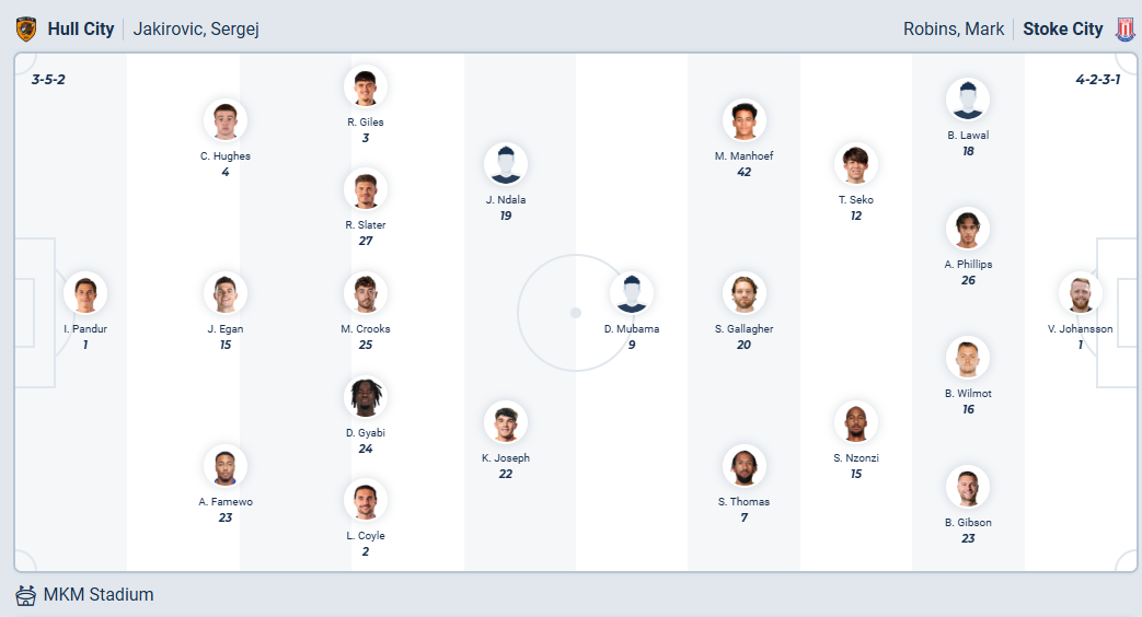 Hull chỉ đứng thứ 21 mùa trước, vị trí phải rất khó khăn mới trụ hạng thành công. Tuy nhiên mùa giải năm nay đội bóng của HLV Sergej Jakirović đã thể hiện một bộ mặt khác hoàn toàn, họ thắng liên tiếp và đang đứng thứ tư trên bảng xếp hạng. Với vị trí và phong độ như hiện tại thì các cầu thủ Hull hoàn toàn có thể nghĩ đến chiếc vé thăng hạng vào cuối mùa, điều họ cần làm vào lúc này là tiếp tục giành chiến thắng trong các trận đấu của mình và họ đặt mục tiêu có 3 điểm khi tiếp Stoke trên sân nhà. Trước đối thủ không có phong độ cao thì nhiều khả năng đội bóng chủ nhà sẽ có được điều mình cần.