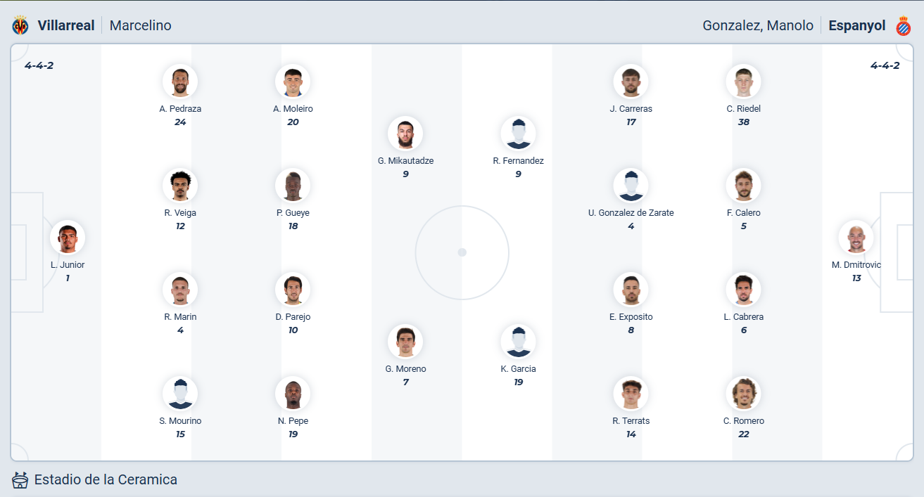 Villarreal gây ra nỗi thất vọng to lớn khi họ là đội duy nhất của La Liga bị loại khỏi Champions League. Tại La Liga đội bóng của HLV Marcelino đang đứng thứ tư trên bảng xếp hạng nhưng phong độ không hề tốt chút nào, họ chỉ có 1 điểm ở 3 vòng gần nhất và nếu không giành kết quả tốt thì nguy cơ rơi ra khỏi top dự Champions League là rất cao. Chính vì vậy Villarreal cần giành chiến thắng ở vòng đấu thứ 23 này, việc chỉ phải đối đầu với một Espanyol còn đang có phong độ tệ hại hơn là cơ hội tốt để các cầu thủ Villarreal tìm lại niềm vui chiến thắng và khả năng họ sẽ có 3 điểm trọn vẹn.