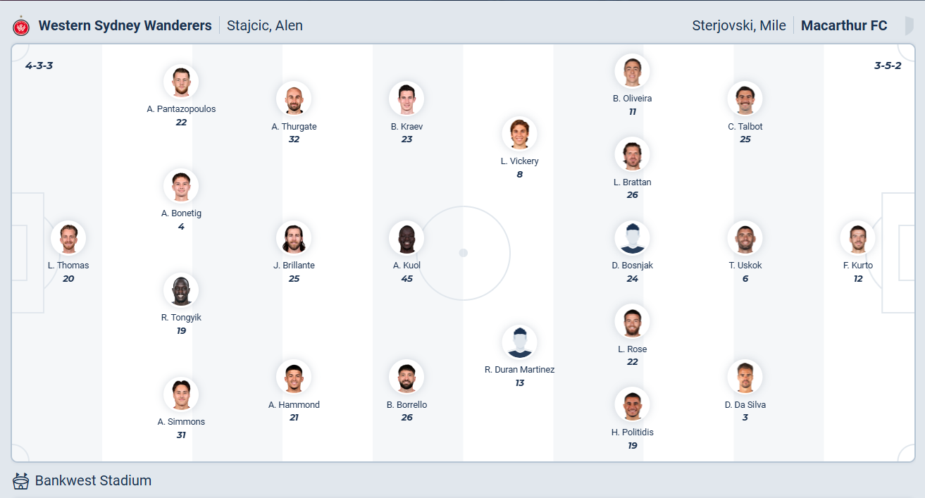 Western Sydney đứng thứ tư mùa trước, rõ ràng họ không phải đội bóng yếu. Chính vì vậy việc đang đứng thứ 11 ở mùa giải này và để thua 3/4 trận gần nhất là điều rất bất ngờ. Đội bóng của HLV Alen Stajcic cần ngay lập tức chơi tốt và thể hiện đúng đẳng cấp của mình để có thể có vị trí tốt hơn trên bảng xếp hạng. Họ đặt mục tiêu giành chiến thắng trước Macarthur ở vòng đấu thứ 11 này, lợi thế sân nhà là điều giúp các cầu thủ Western Sydney tự tin và nhiều khả năng họ sẽ chơi đủ tốt để có được điều mình cần.